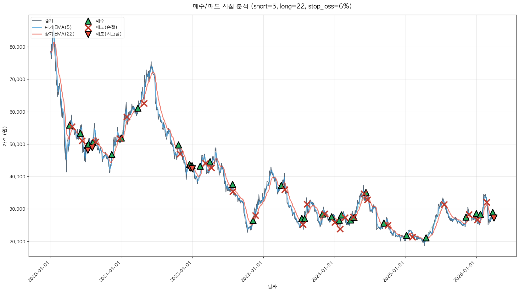 백테스팅 중... (short=5, long=22, stop_loss=6%)