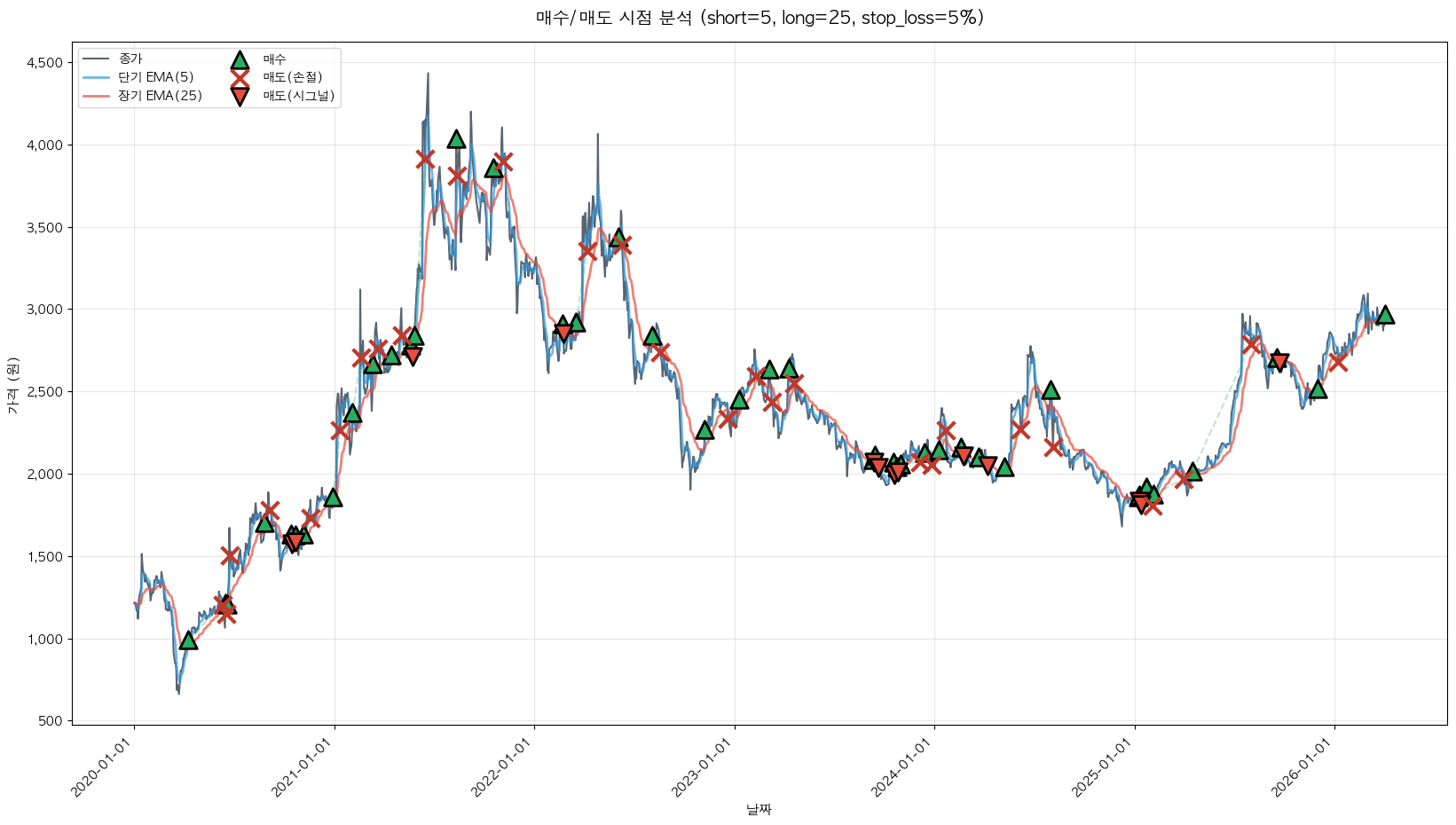 백테스팅 중... (short=5, long=25, stop_loss=5%)
