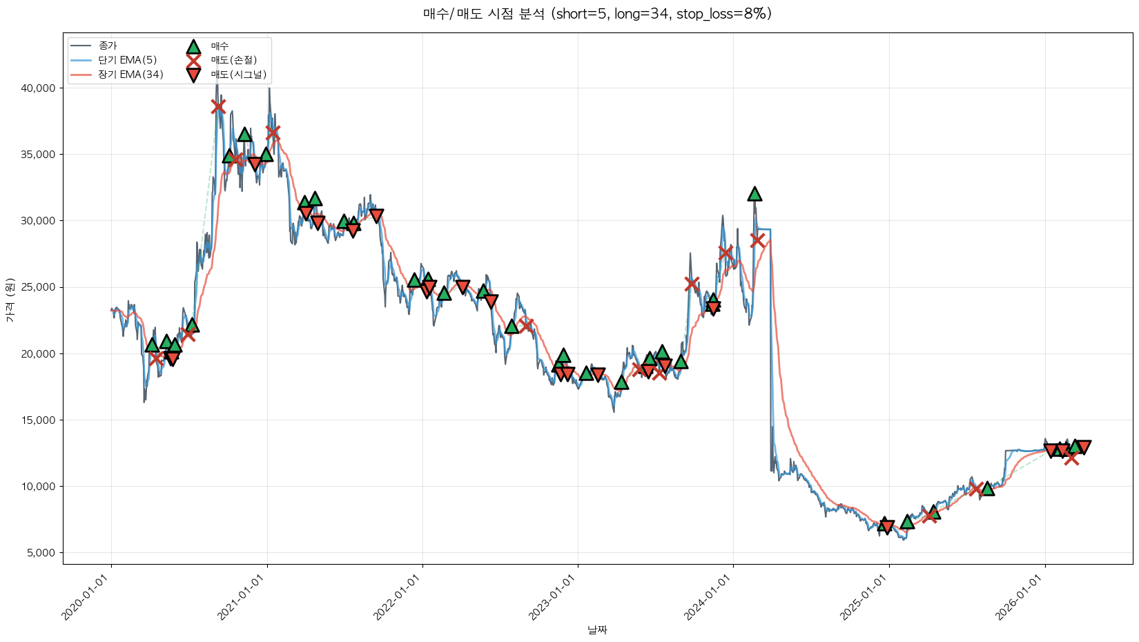백테스팅 중... (short=5, long=34, stop_loss=8%)