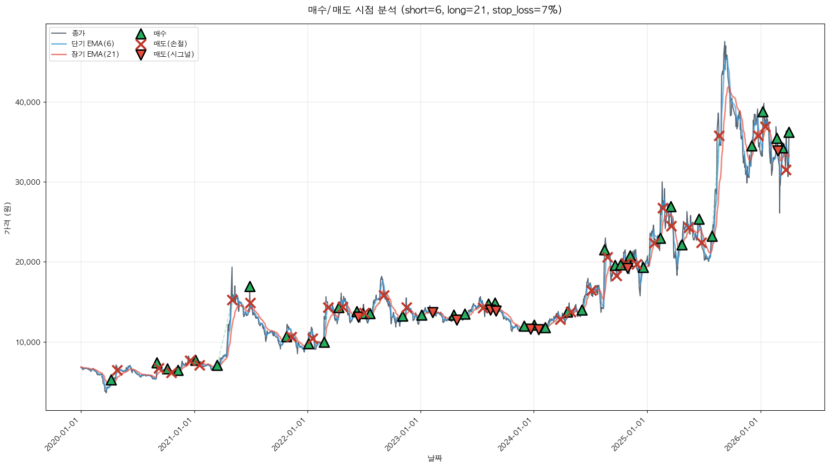 백테스팅 중... (short=6, long=21, stop_loss=7%)
