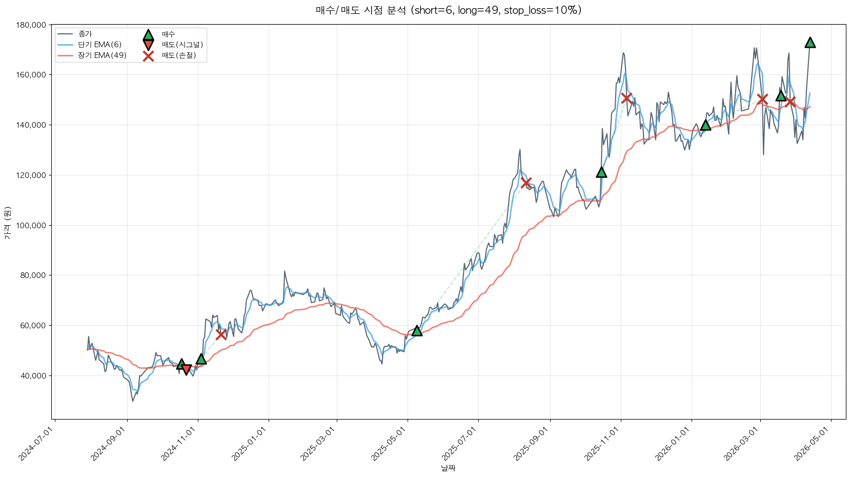 백테스팅 중... (short=6, long=49, stop_loss=10%)