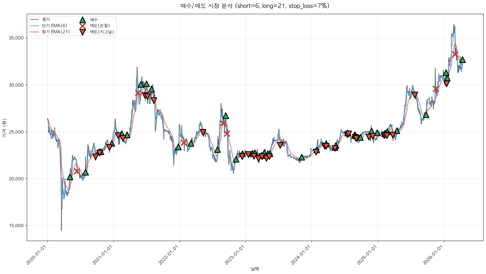 백테스팅 중... (short=6, long=21, stop_loss=7%)