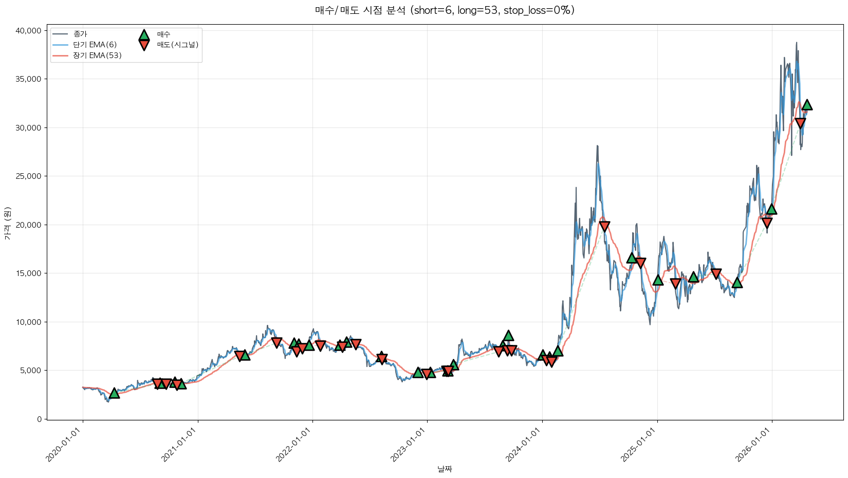 최적 파라미터: 단기=6, 장기=53, 손절=0%