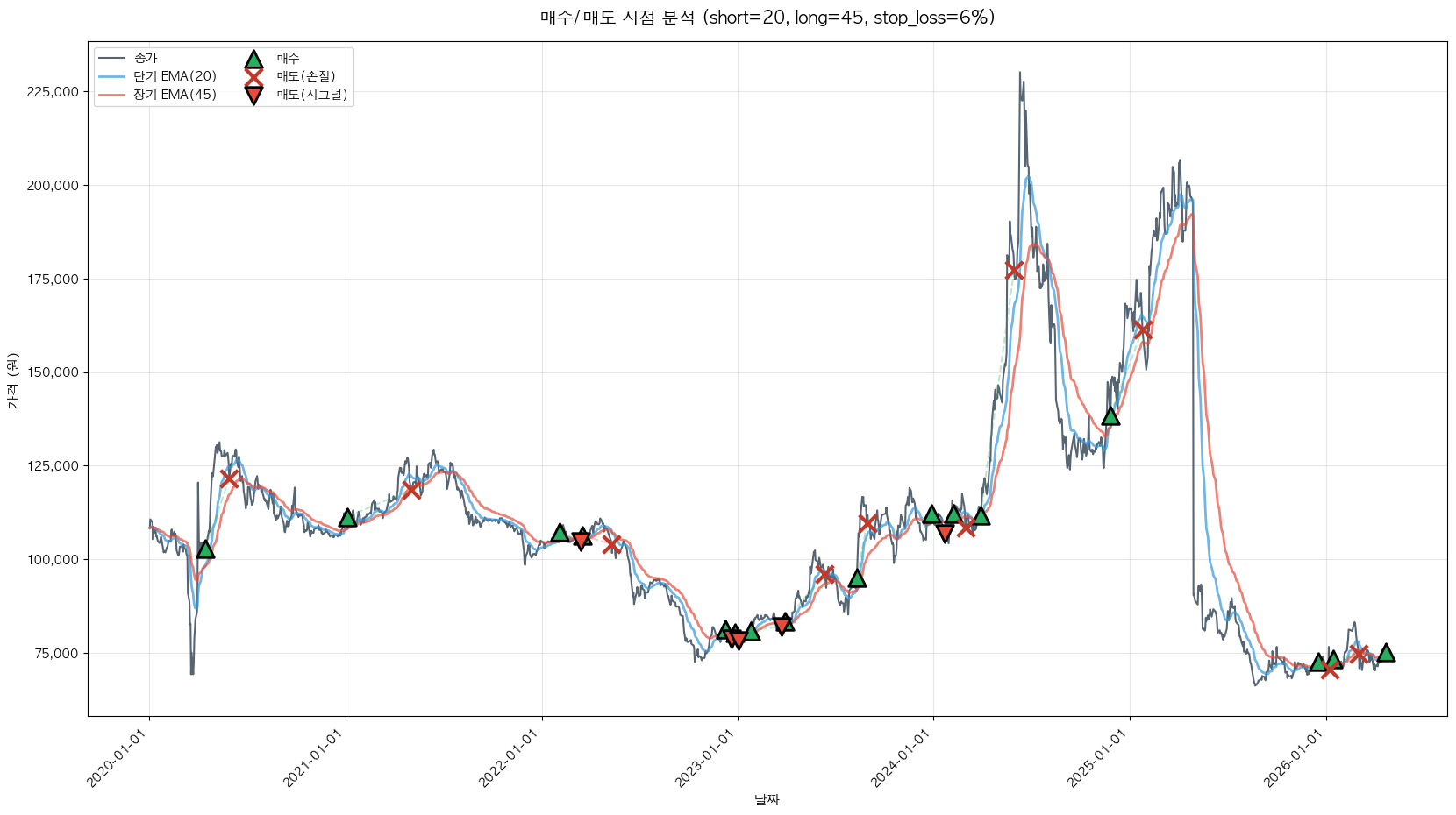 백테스팅 중... (short=20, long=45, stop_loss=6%)