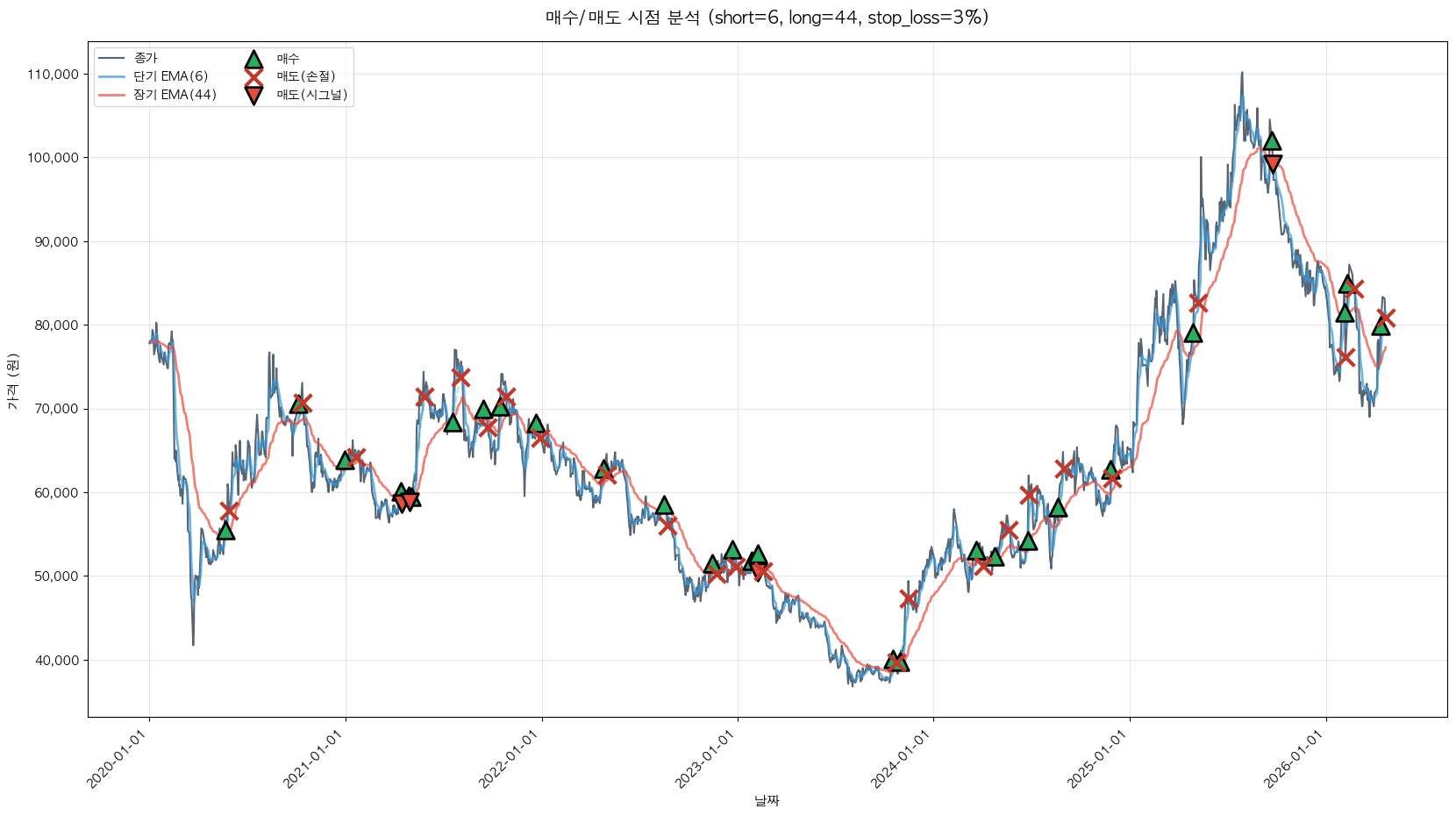 백테스팅 중... (short=6, long=44, stop_loss=3%)