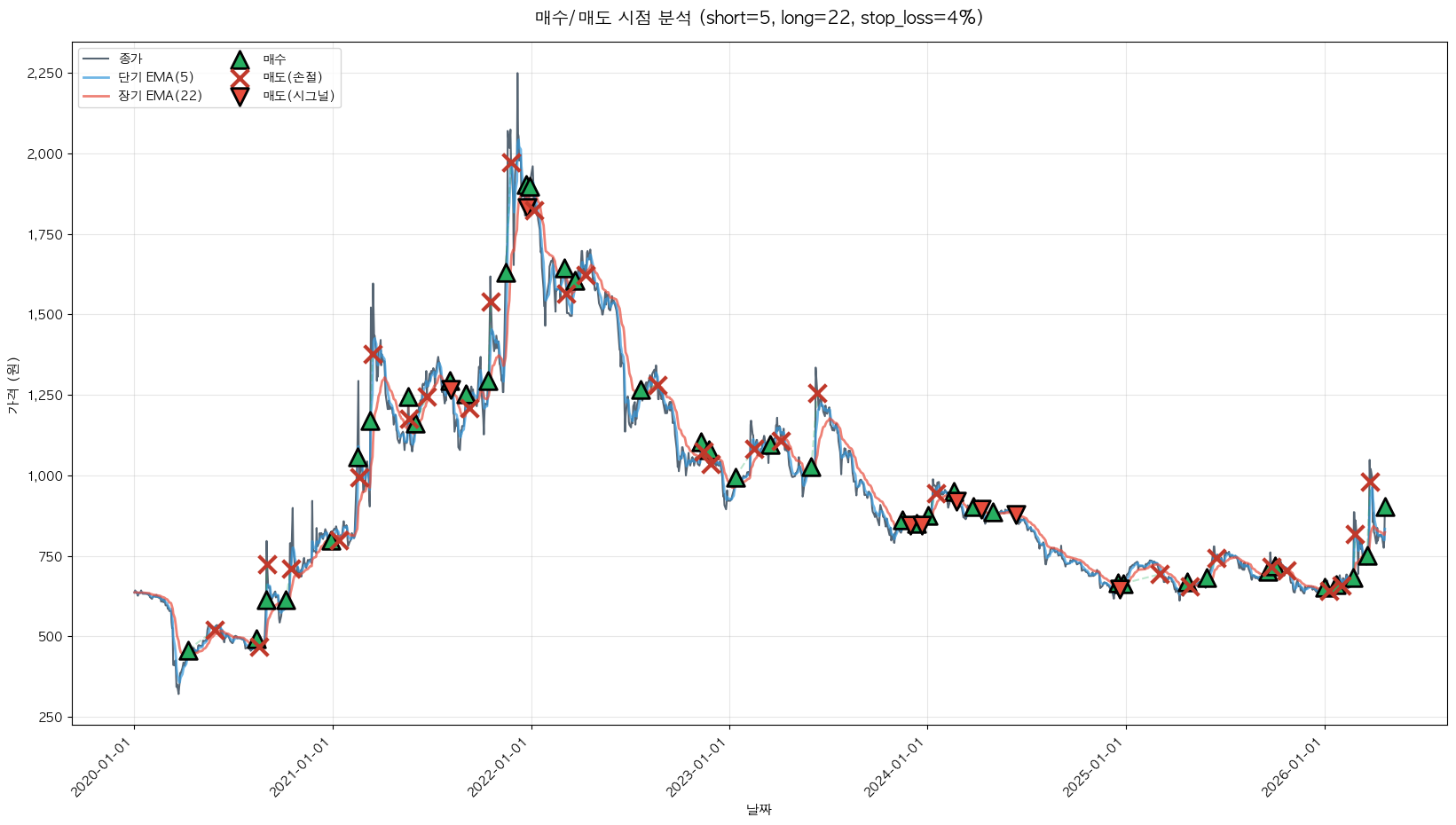 백테스팅 중... (short=5, long=22, stop_loss=4%)