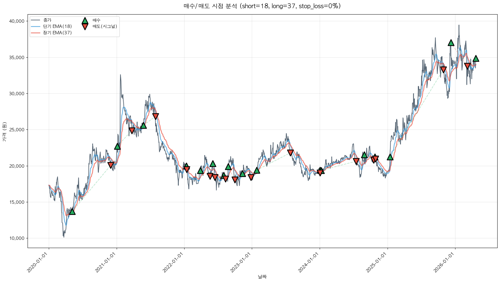 최적 파라미터: 단기=18, 장기=37, 손절=0%
