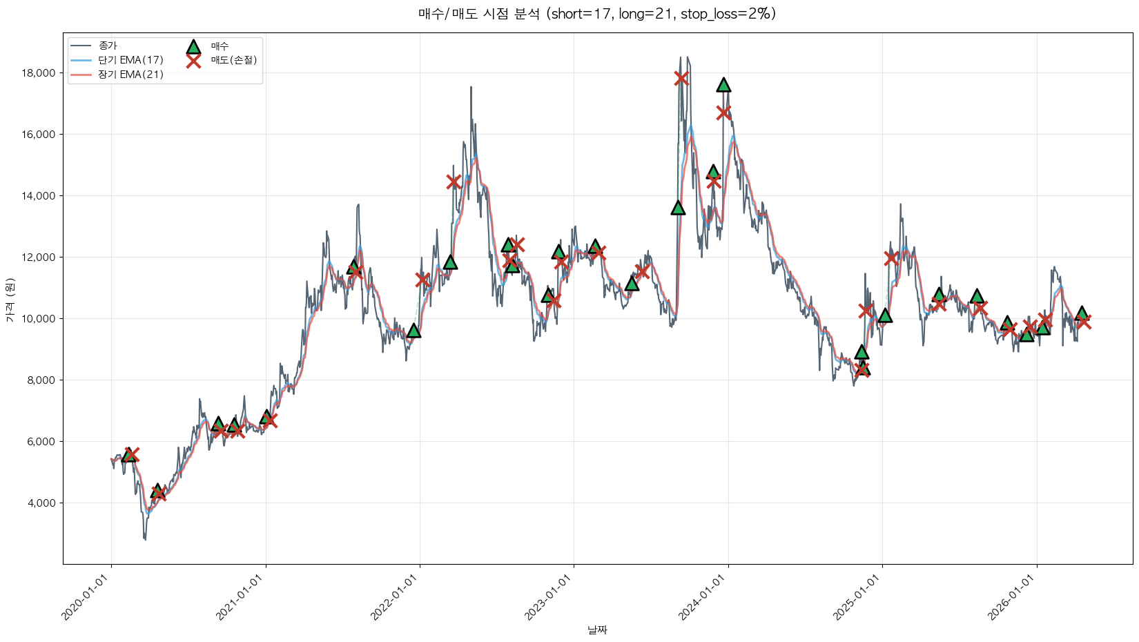 최적 파라미터: 단기=17, 장기=21, 손절=2%