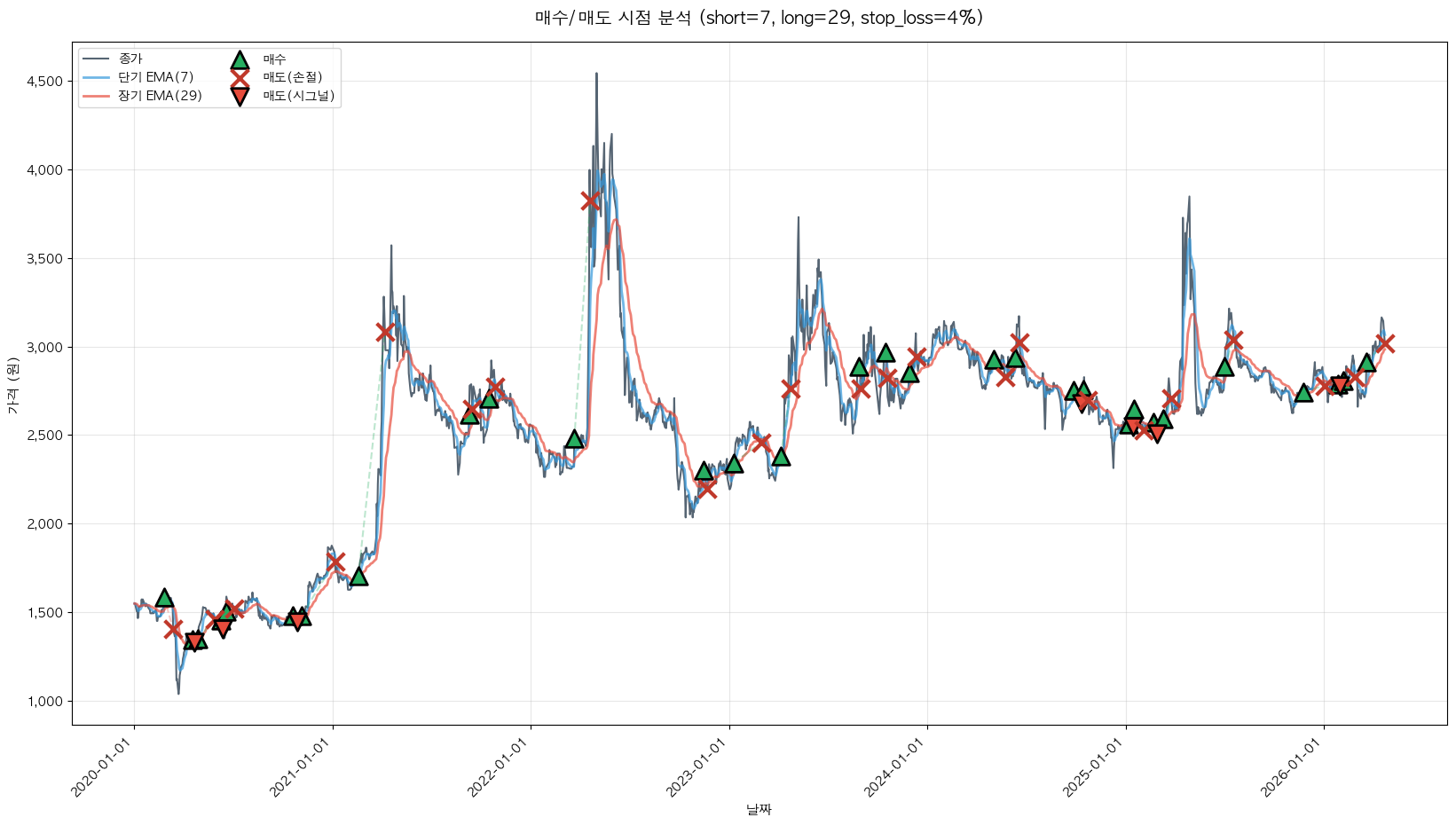 백테스팅 중... (short=7, long=29, stop_loss=4%)