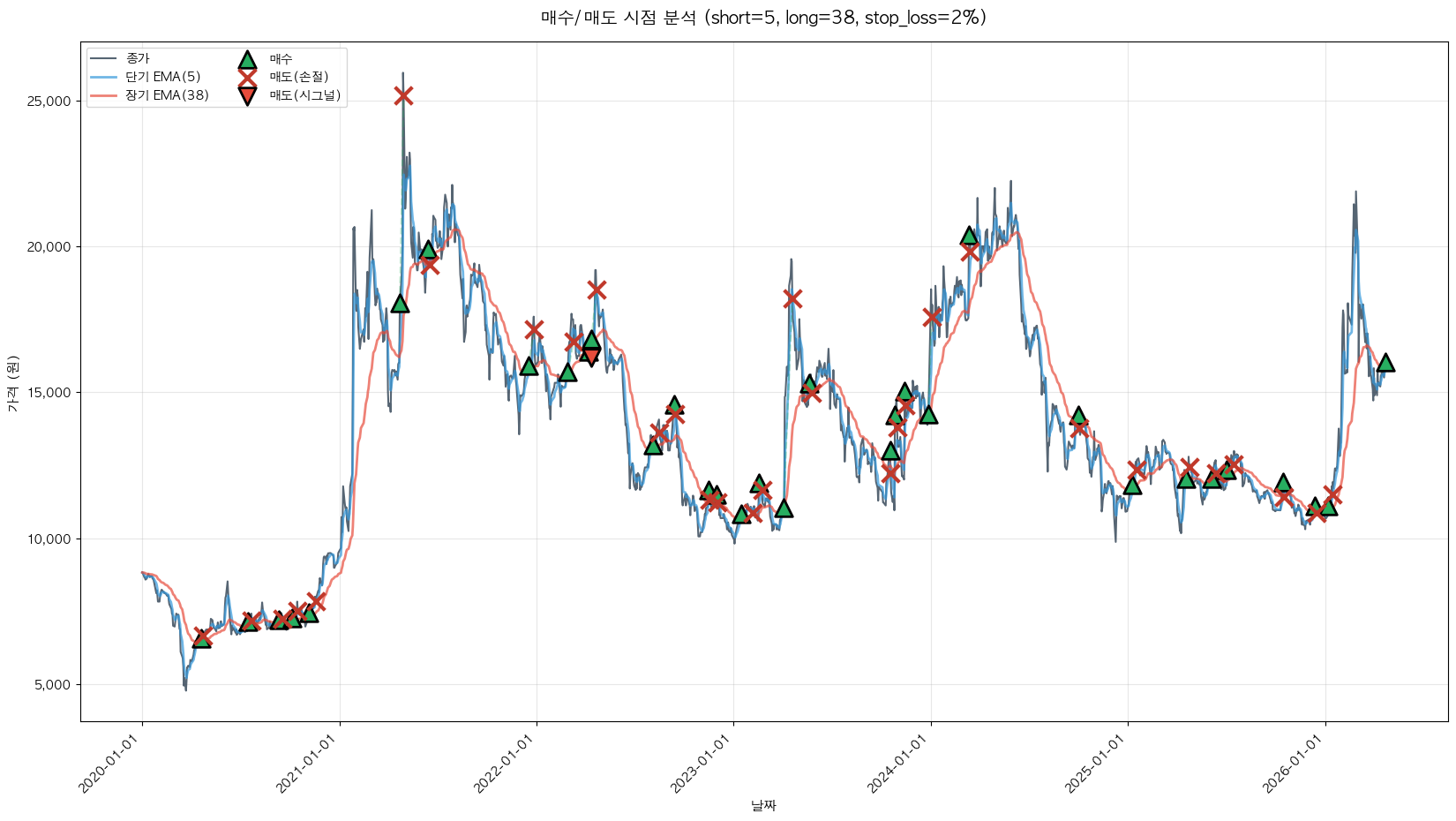 최적 파라미터: 단기=5, 장기=38, 손절=2%