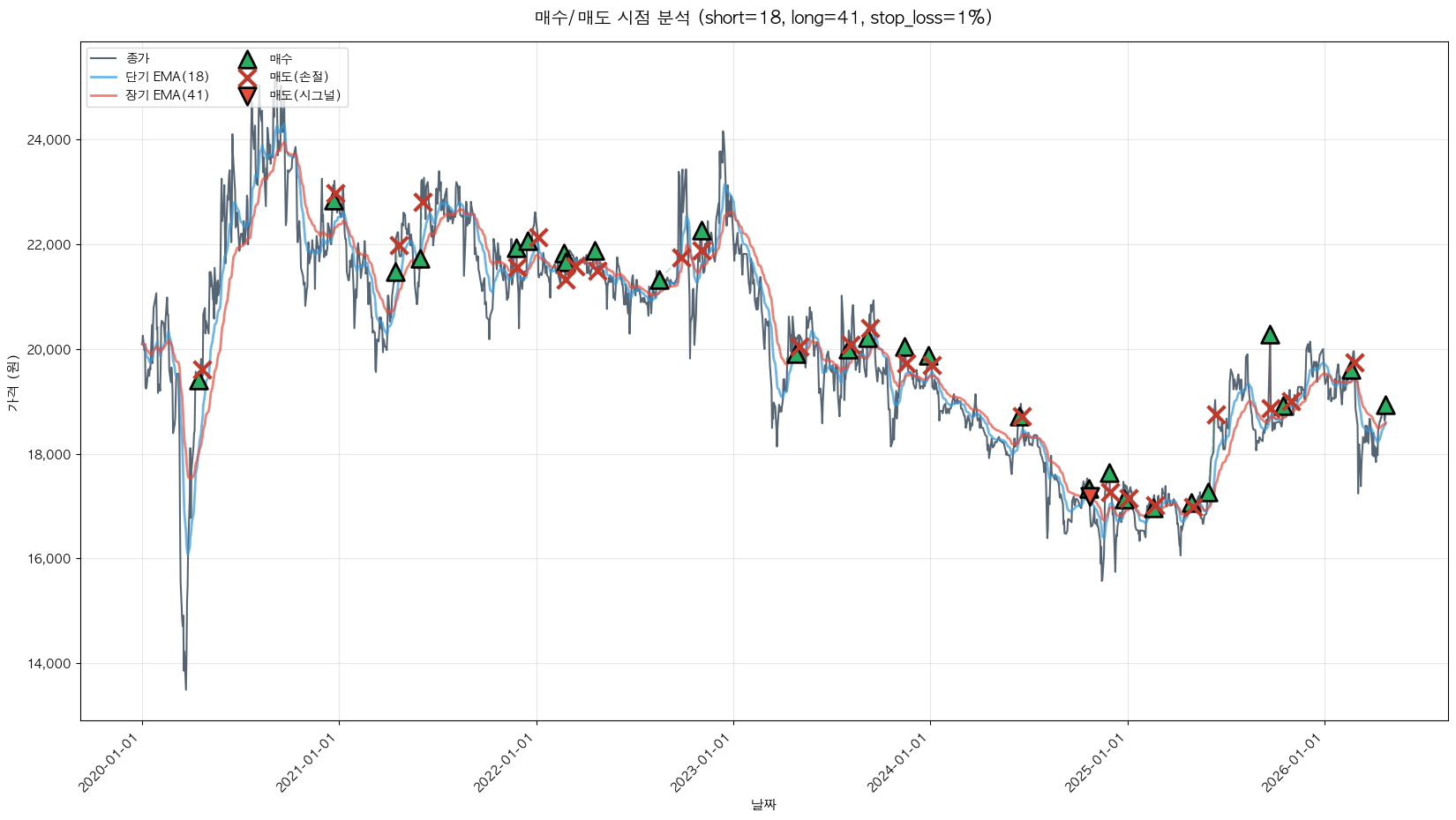 최적 파라미터: 단기=18, 장기=41, 손절=1%