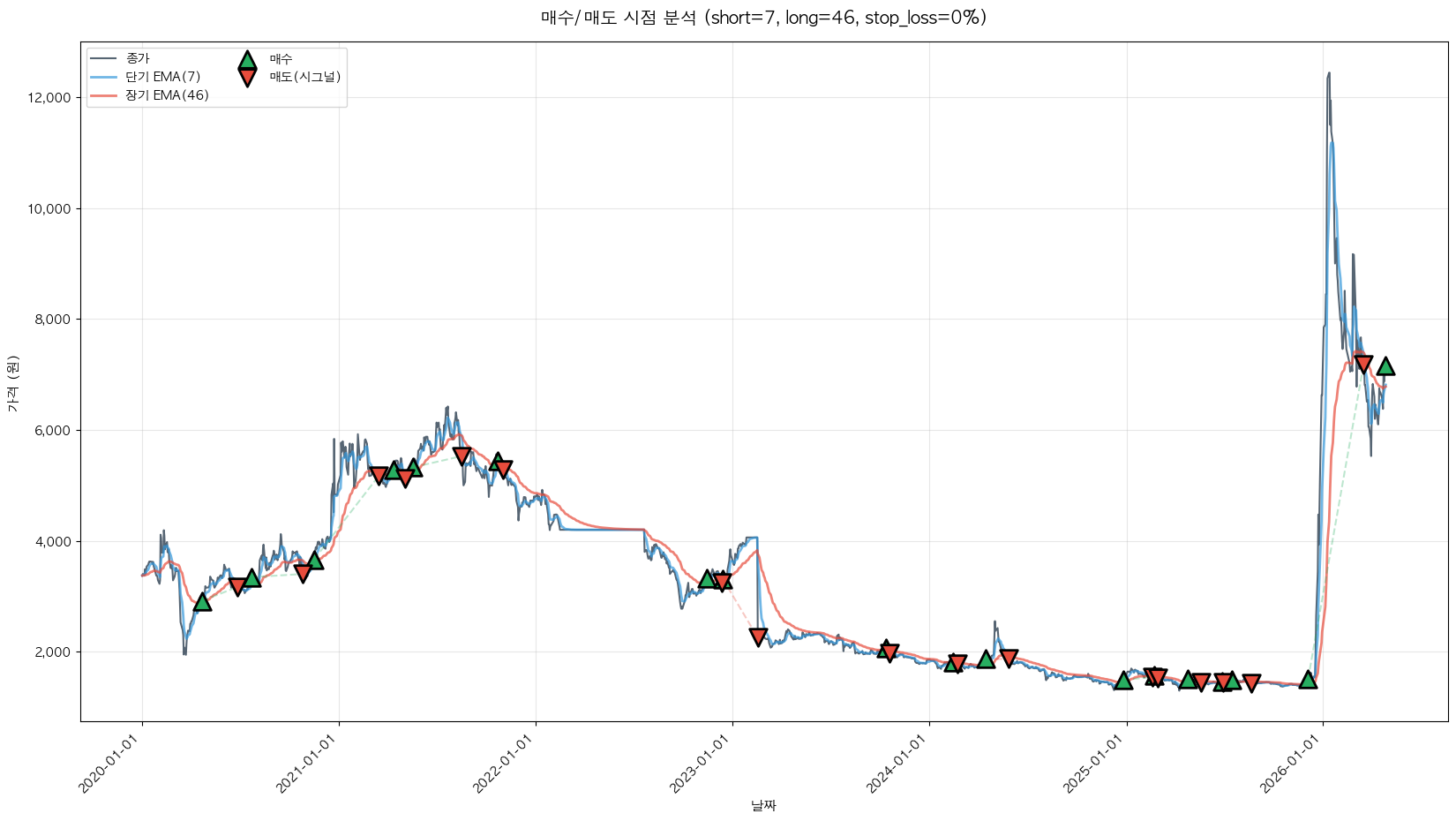 백테스팅 중... (short=7, long=46, stop_loss=0%)