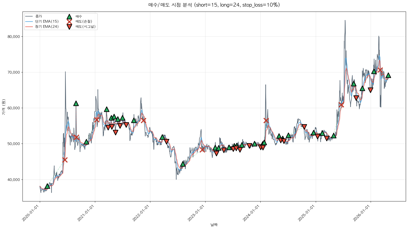 백테스팅 중... (short=15, long=24, stop_loss=10%)