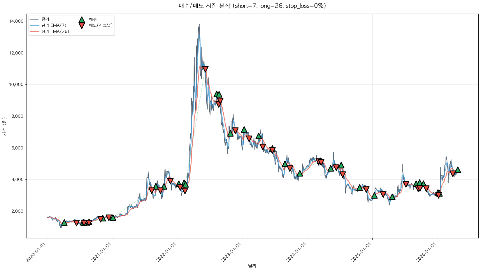 백테스팅 중... (short=7, long=26, stop_loss=0%)