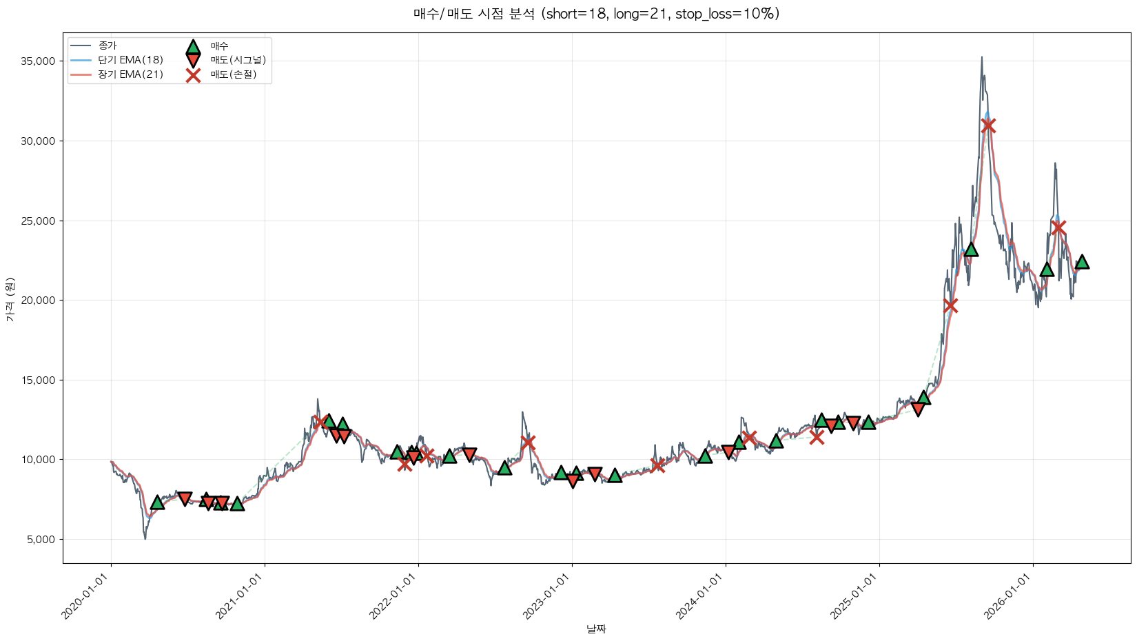 백테스팅 중... (short=18, long=21, stop_loss=10%)