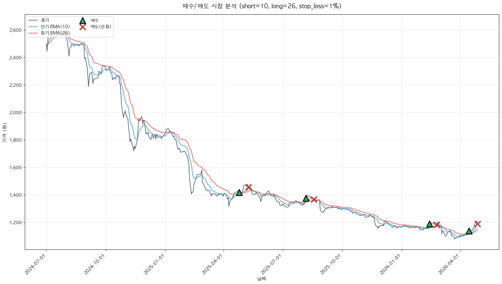백테스팅 중... (short=10, long=26, stop_loss=1%)