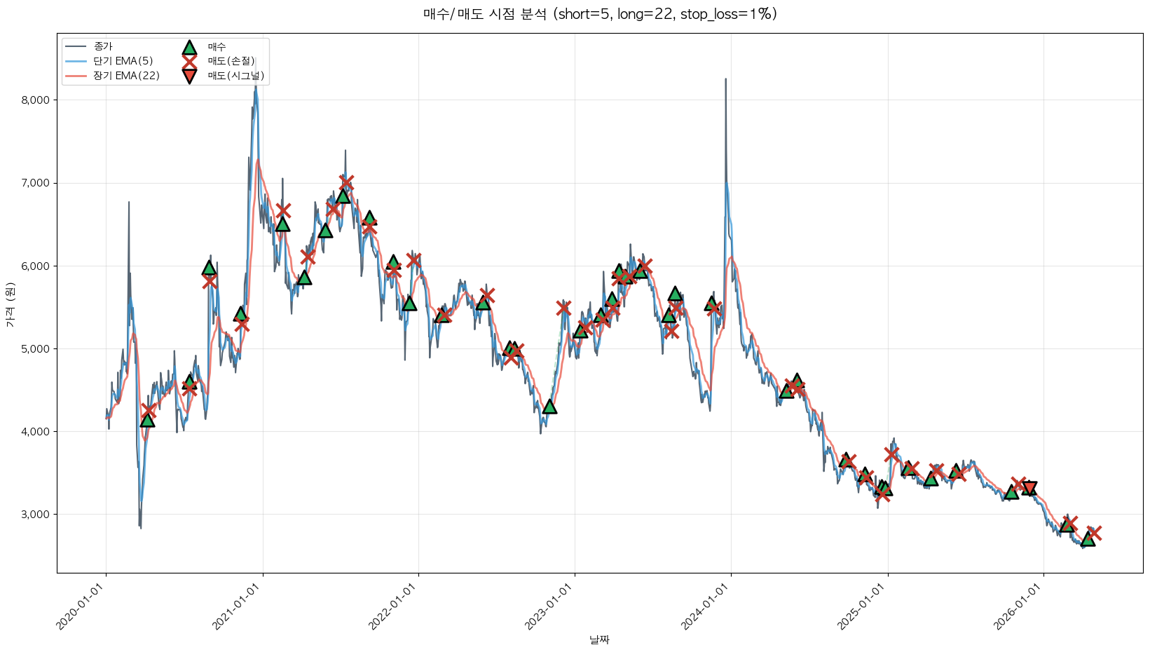 백테스팅 중... (short=5, long=22, stop_loss=1%)