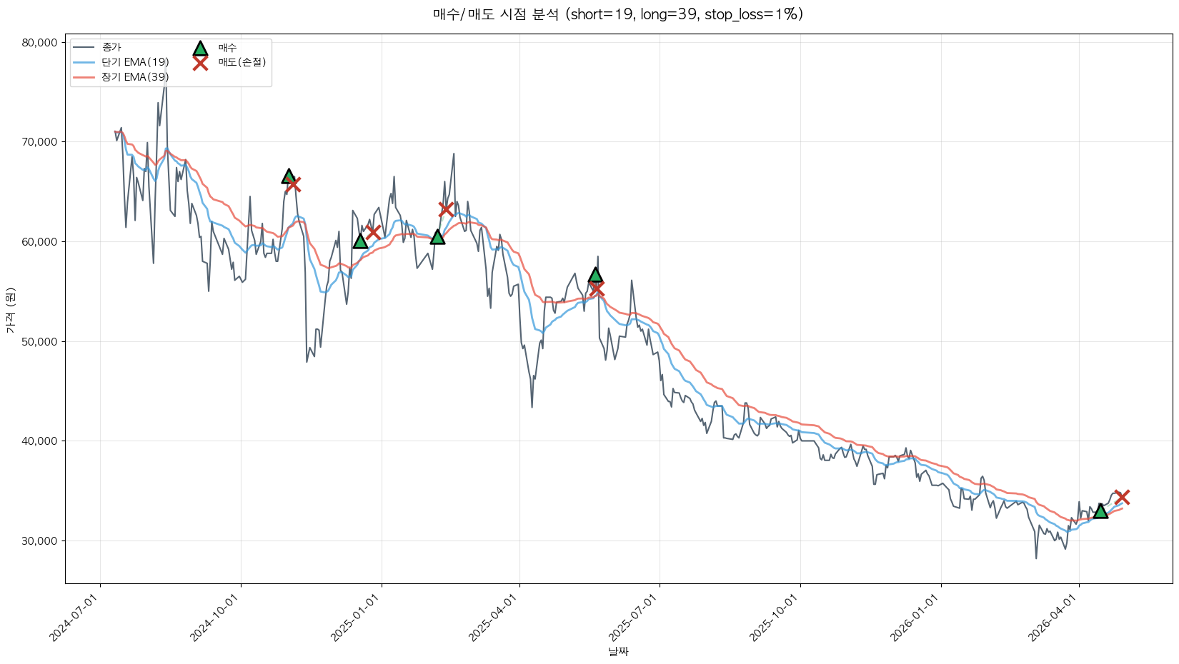 백테스팅 중... (short=19, long=39, stop_loss=1%)