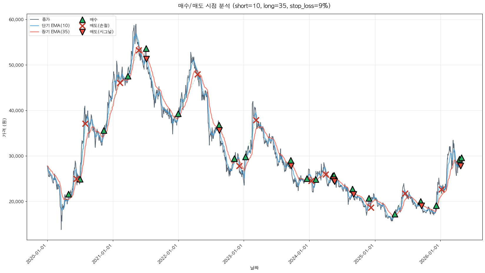 백테스팅 중... (short=10, long=35, stop_loss=9%)