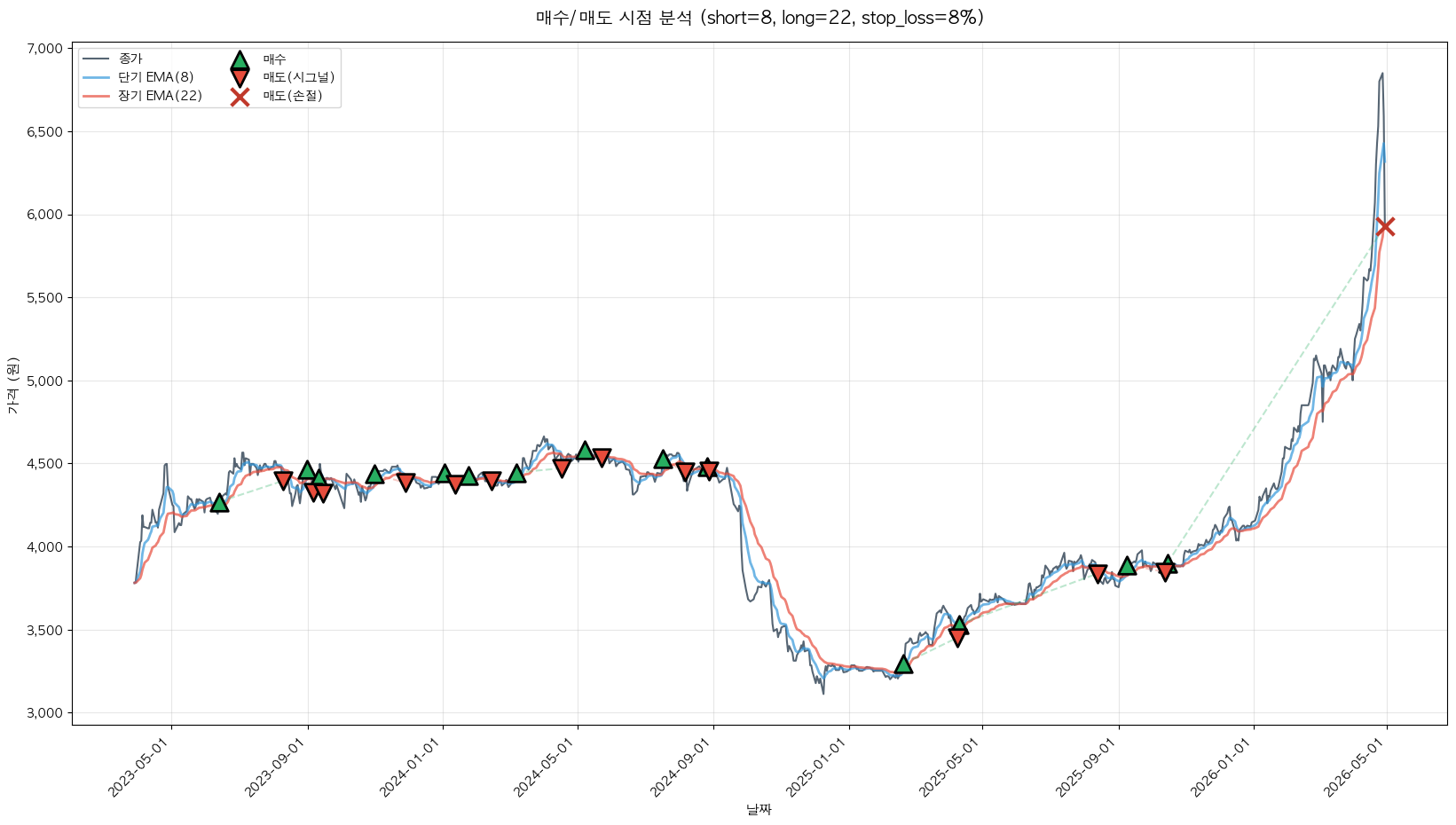 백테스팅 중... (short=8, long=22, stop_loss=8%)