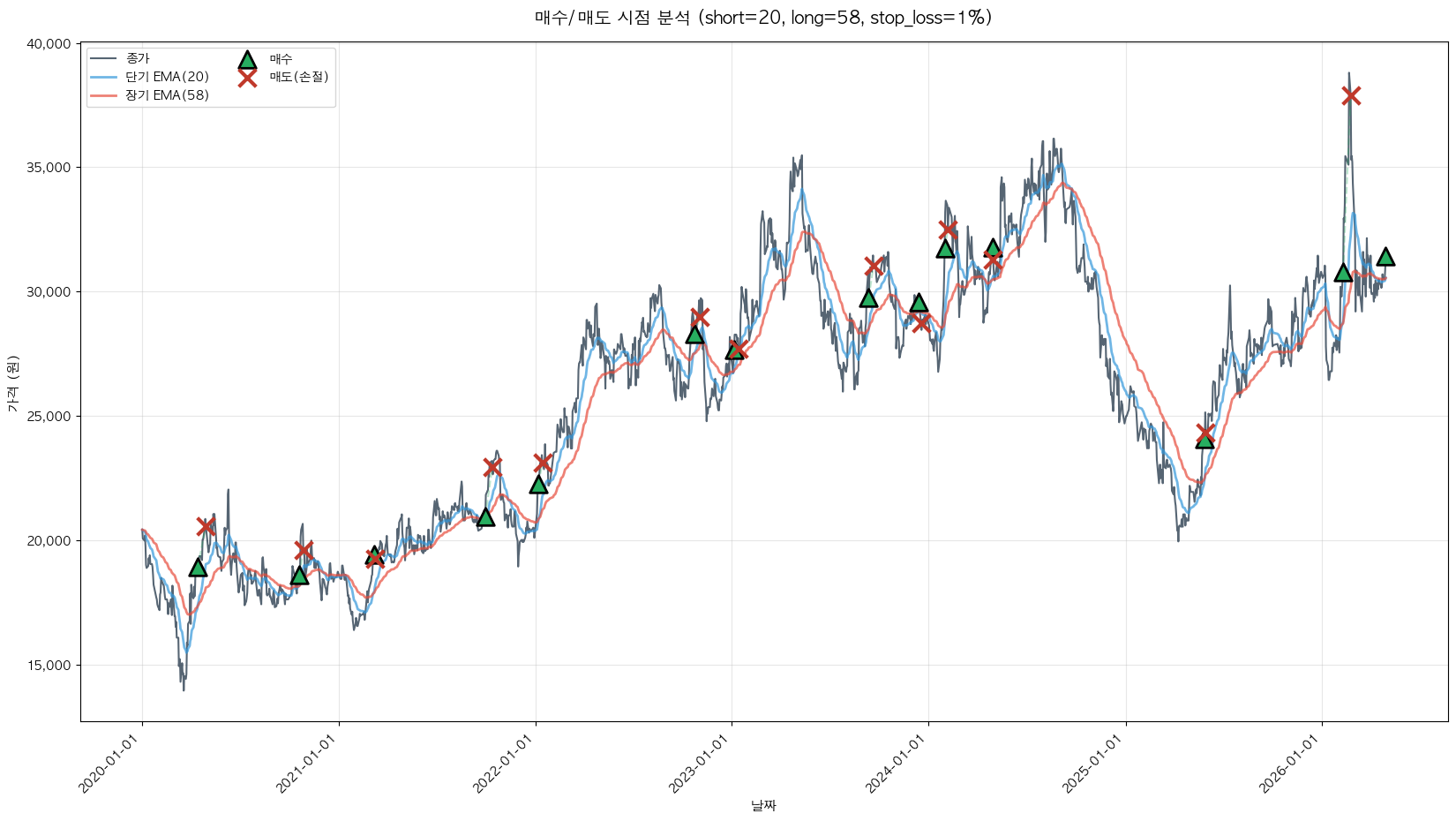 백테스팅 중... (short=20, long=58, stop_loss=1%)